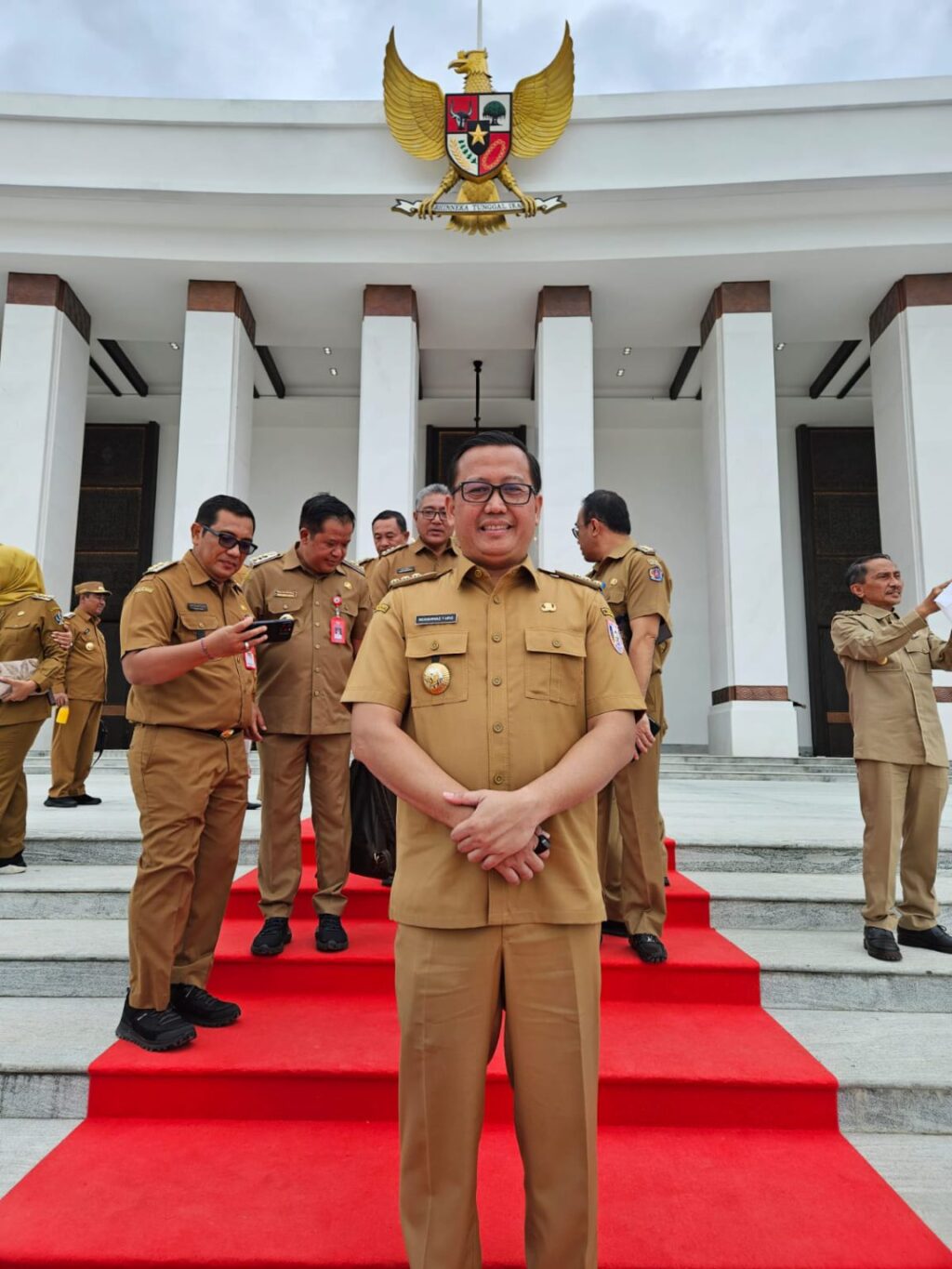 KALIMANTAN TIMUR — Penjabat (Pj) Bupati Banyuasin, Muhammad Farid, S.STP., M.Si bersama Kepala Daerah seluruh Indonesia menghadiri pertemuan dengan Presiden Republik Indonesia, Ir. H. Joko Widodo di Istana Negara, Ibu Kota Nusantara (IKN), Kabupaten Penajam Paser Utara, Provinsi Kalimantan Timur, Selasa (13/8).