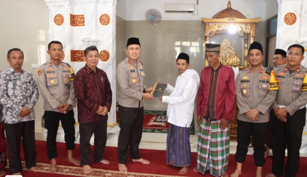 Dalam Safari Jum’at Kapolres Banyuasin AKBP Ruri Prastowo menyampaikan imbauan Cooling System Pilkada Damai dan Bahaya Narkoba serta memberikan tali asih kepada Pengurus Masjid Al Mu’min.
