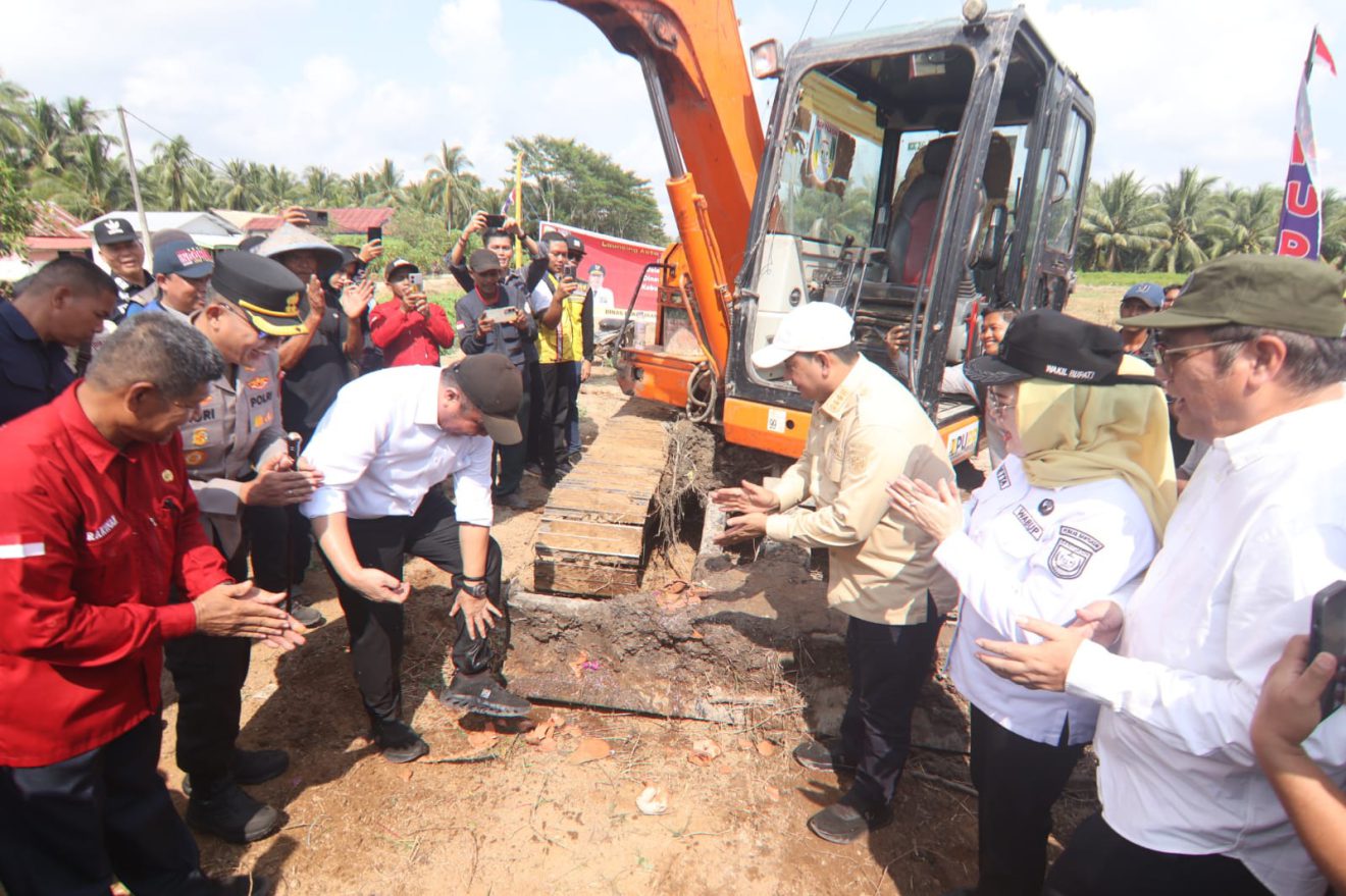 KARANG AGUNG ILIR — Dalam Peningkatan infrastruktur di Kabupaten Banyuasin, Bupati Banyuasin, Dr. H. Askolani, SH., MH dan Wakil Bupati Banyuasin, Netta Indian, SP bersama Gubernur Sumatera Selatan, Dr. H. Herman Deru, SH., MH melaunching Aksi Sigap Tanggap Infrastruktur (Asta Infra) di Desa Majuria, Kecamatan Karang Agung Ilir, Jum’at (25/07/2025).