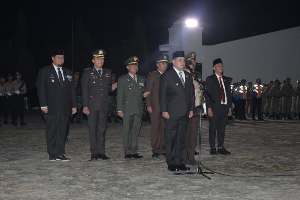 Bertindak sebagai Inspektur Upacara, Bupati Banyuasin Dr. H. Askolani, S.H., M.H., secara langsung memimpin Apel Kehormatan Renungan Suci dan Ziarah secara khidmat pada tengah malam dan diikuti oleh setiap unsur yang mengikuti Apel Kehormatan.