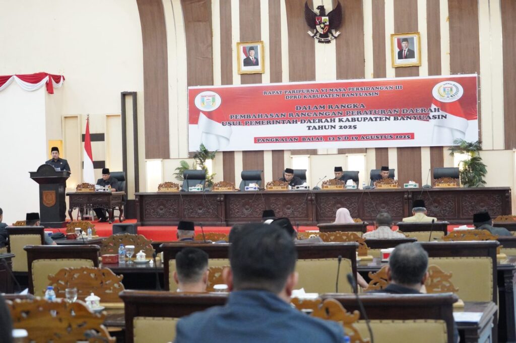 PANGKALAN BALAI – DPRD Kabupaten Banyuasin menggelar Rapat Paripurna lanjutan, terkait penyampaian jawaban tanggapan oleh Bupati Banyuasin atas pandangan umum dari tiap fraksi-fraksi DPRD Kabupaten Banyuasin yang dilaksanakan di Gedung Rapat Paripurna DPRD Kabupaten Banyuasin, Rabu (13/8).