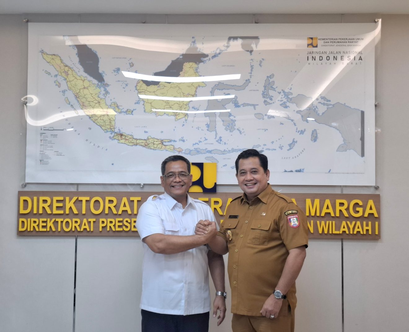 Sumatera Selatan Kementerian Pekerjaan Umum RI, Panji Krisna Wardana, S.T., M.T dan Kasubid Jembatan, Gatot Sukmara, ST., MT di Kantor Kementerian PU RI, Jakarta Selatan, Senin (22/09/2025).