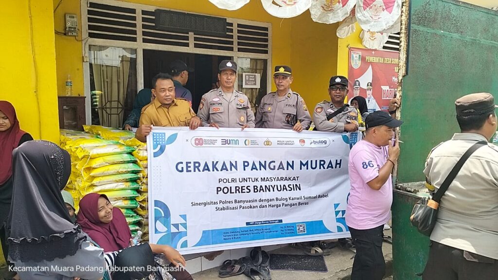 *Banyuasin* – Polsek Muara Padang di bawah naungan Polres Banyuasin, sukses melaksanakan Gerakan Pangan Murah (GPM) dengan menjual beras SPHP (Stabilisasi Pasokan dan Harga Pangan) milik Bulog, Kegiatan yang berlangsung pada Senin, 8 September 2025, ini mendapat sambutan antusias dari masyarakat dan berhasil mendistribusikan 10 ton beras dengan harga terjangkau.