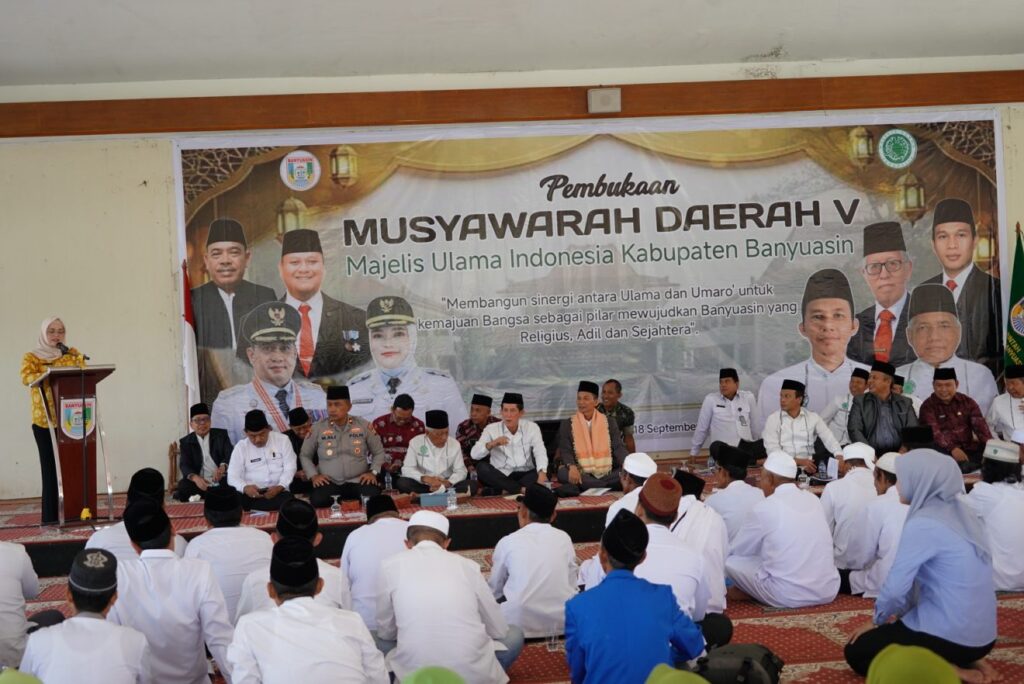 PANGKALAN BALAI – Wakil Bupati Banyuasin, Netta Indian,S.P resmi membuka Musyawarah Daerah ke-V Majelis Ulama Indonesia Kabupaten Banyuasin dengan tema, “ Membangun Sinergi antara Ulama dan Umaro’ untuk kemajuan bangsa sebagai pilar mewujudkan Banyuasin Religius, Adil, dan Sejahtera” di Pendopoan Rumah Dinas Bupati Banyuasin, Kamis (18/09).