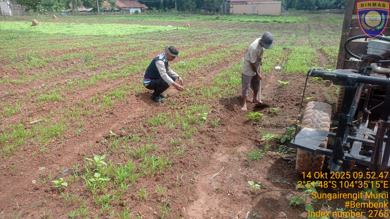 Kegiatan yang berlangsung pada Selasa (14/10/2025) pagi tersebut dipusatkan di pekarangan rumah seorang warga, Bapak Rahmad, di RT 11 Dusun 03, Sungai Rengit Murni. Dengan semangat gotong royong, Bhabinkamtibmas setempat menghimbau dan mengajak warga untuk memanfaatkan lahan pekarangan guna mendukung Program Swasembada Pangan Nasional yang dicanangkan oleh Presiden RI.