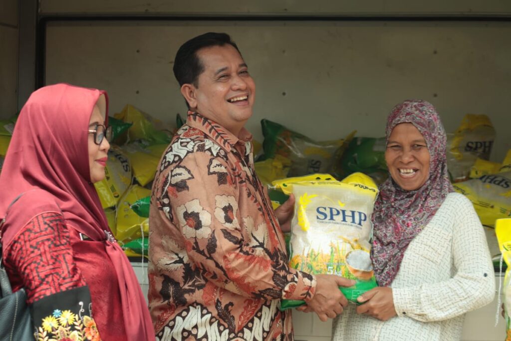 Talang Kelapa — Bupati Banyuasin, Dr. H. Askolani, SH., MH didampingi oleh Camat Talang Kelapa, Salinan, S. Sos., M. Si melaunching Pasar Kaget Kecamatan Talang Kelapa di Halaman Kantor Camat Talang Kelapa, Jum’at (17/10/2025).