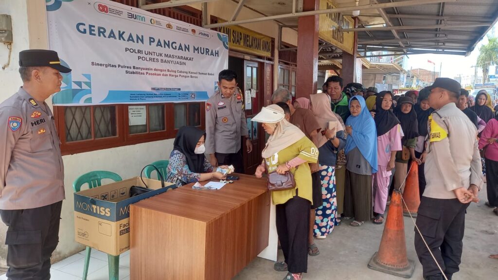 BANYUASIN -Sebagai wujud nyata kepedulian dan dukungan terhadap ketahanan pangan, Polsek Talang Kelapa, Polres Banyuasin sukses menggelar Gerakan Pangan Murah (GPM) di Halaman Pos Pol Kenten