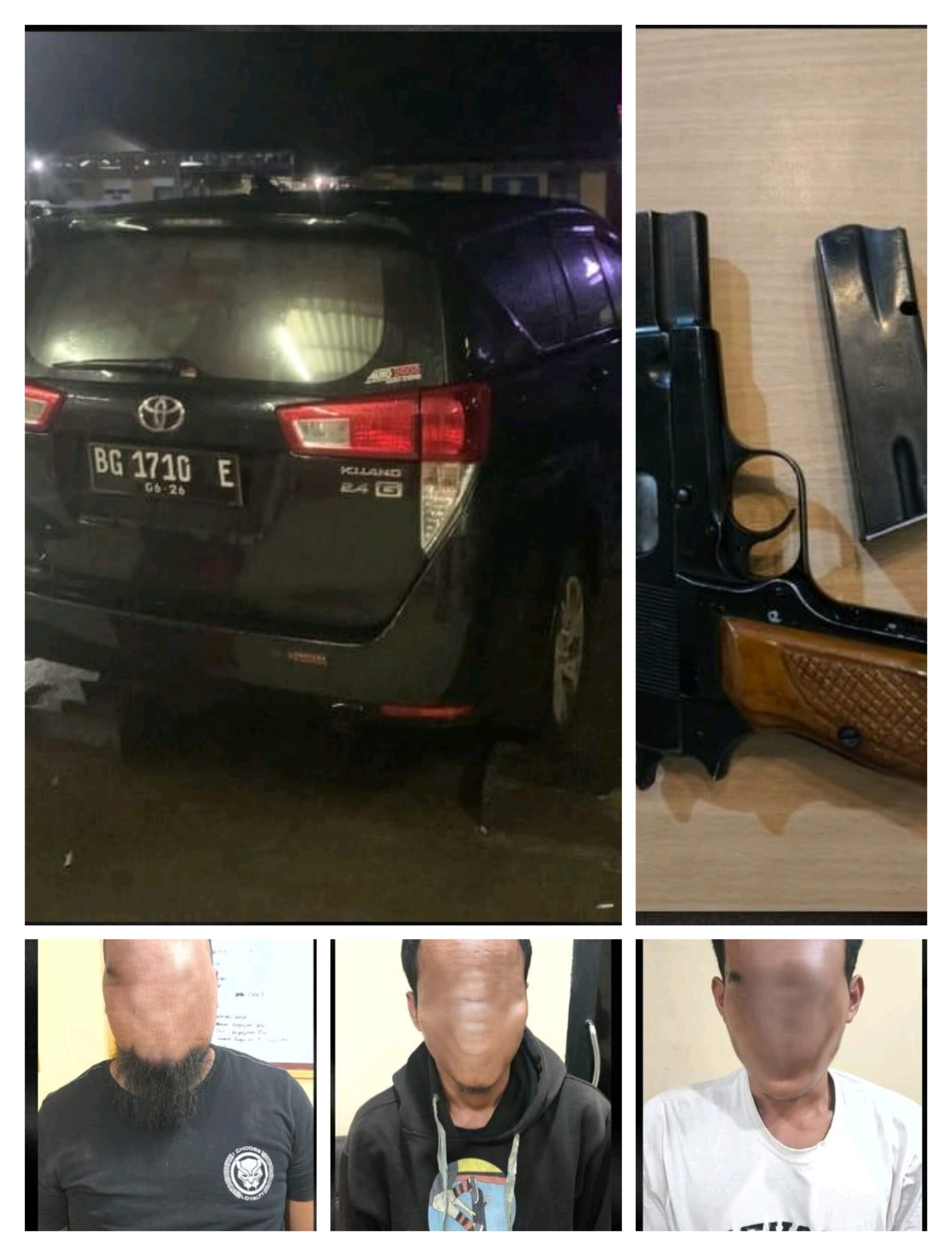 Dari tangan para tersangka, polisi menyita sejumlah barang bukti kunci, Yaitu, 1 unit mobil Kijang Innova hitam dengan nopol BG 1710 E, pucuk senjata api berwarna hitam dengan gagang kayu.