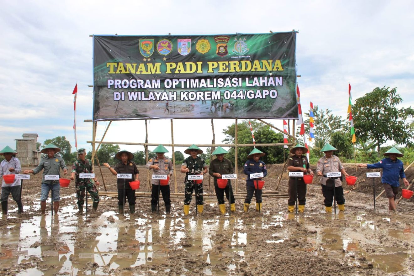 Terus Optimalkan Ketahanan Pangan, Staf Ahli Bupati Banyuasin Dan Dandim O430/BA Tanam Padi Perdana