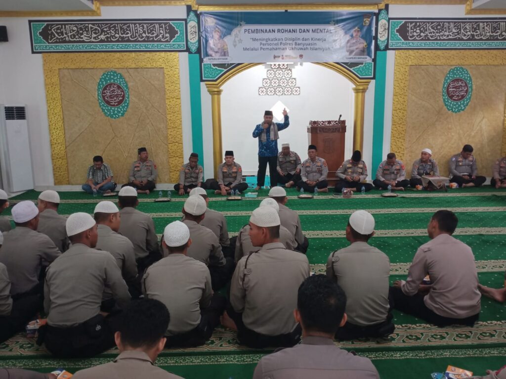 *Banyuasin* – Guna meningkatkan kedisiplinan dan kinerja personel, jajaran Polres Banyuasin menggelar kegiatan Pembinaan Rohani dan Mental (Binrohtal) dengan tema “Meningkatkan Disiplin dan Kinerja Personel Polres Banyuasin melalui Pemahaman Ukhuwah Islamiyah”. Kegiatan ini berlangsung pada Kamis, 6 November 2025, di Musholla Nurul Iman Polres Banyuasin.