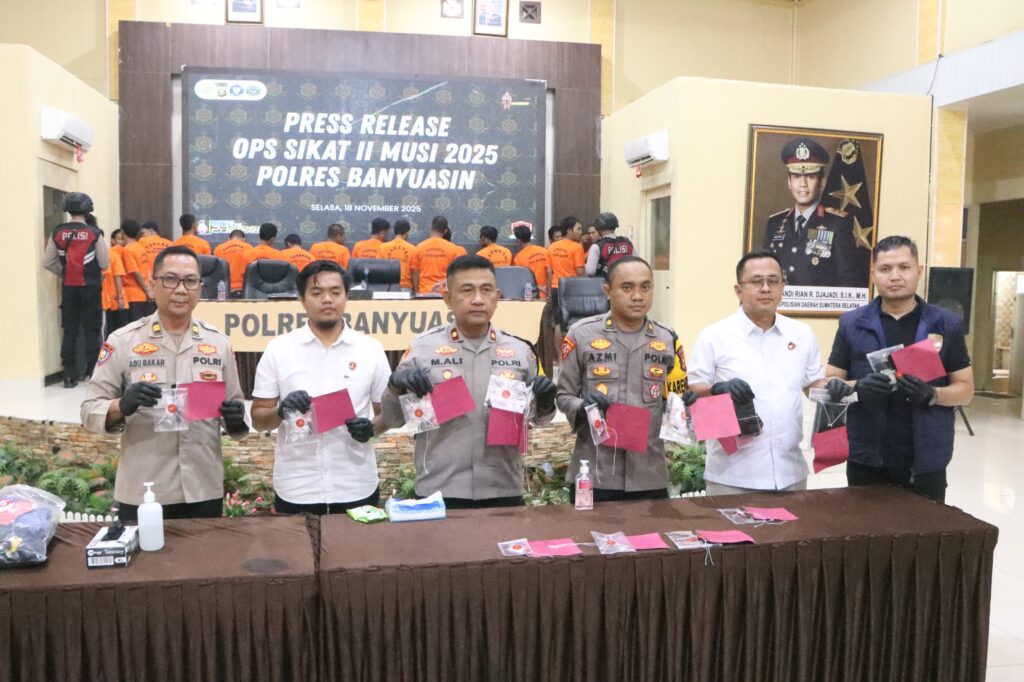 *Banyuasin* – Polres Banyuasin berhasil mengungkap sejumlah kasus kejahatan dalam Operasi Sikat II Musi 2025 yang berlangsung selama 15 hari, dari 30 Oktober hingga 13 November 2025.
