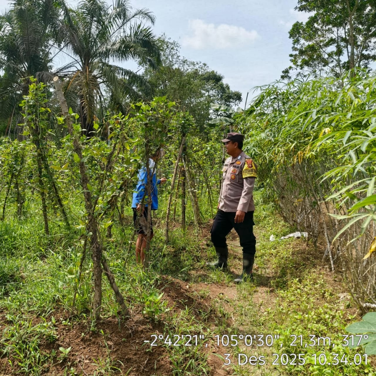 Selain memberikan imbauan, Bhabinkamtibmas juga melakukan pengecekan tanaman pangan berupa kacang panjang yang ditanam di lahan seluas kurang lebih 40 meter persegi milik salah satu warga, Bapak Katon. Kegiatan ini bertujuan untuk memberikan motivasi kepada masyarakat agar terus memanfaatkan lahan yang ada sebagai upaya meningkatkan ketahanan pangan.