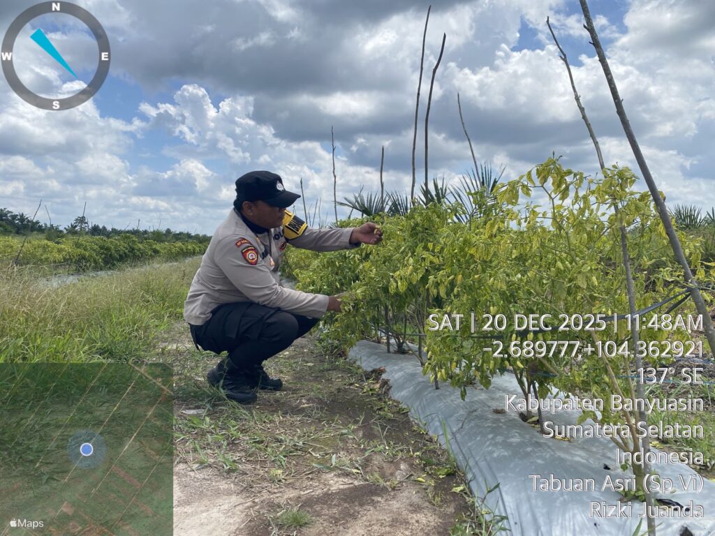 Banyuasin – Personel Bhabinkamtibmas Polsek Pulau Rimau melaksanakan kegiatan pembinaan dan penyuluhan kepada masyarakat Desa Tabuan Asri, Kecamatan Pulau Rimau, Kabupaten Banyuasin, pada Sabtu (20/12/2025) siang. Kegiatan yang dimulai pukul 13.45 WIB ini berfokus pada penguatan program pemerintah di bidang ketahanan pangan.
