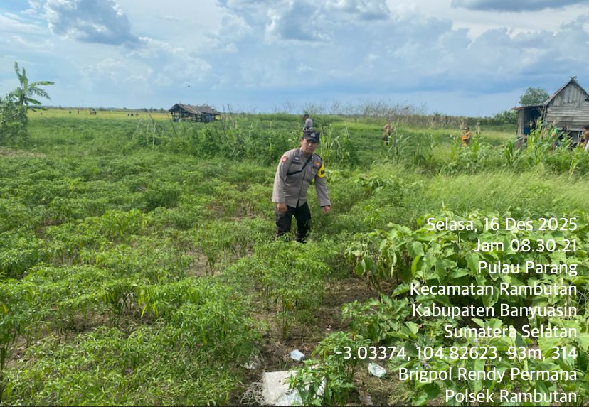 Banyuasin – Bhabinkamtibmas Desa Pulau Parang, Brigpol Rendy Permana, aktif menggerakkan partisipasi masyarakat dalam mendukung program nasional swasembada pangan. Kegiatan ini dilaksanakan di Desa Pulau Parang, Kecamatan Rambutan, Kabupaten Banyuasin, pada Selasa (16/12/2025) pagi, mulai pukul 13.30 WIB.