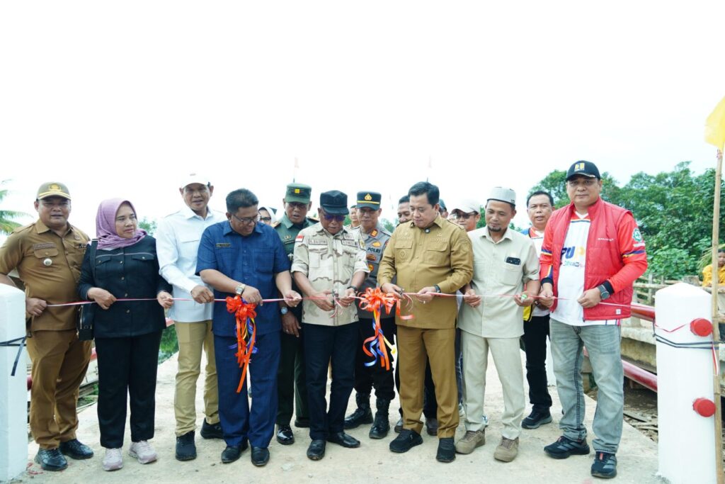 Muara Padang — Setelah meresmikan Jalan SP3 Sei Tapa – Sebubus Kecamatan Air Kumbang, Bupati Banyuasin, Dr. H. Askolani., SH., MH lanjut meresmikan Jembatan Penghubung Desa Margo Mulyo, Kecamatan Muara Padang, Selasa (2/12/2025).