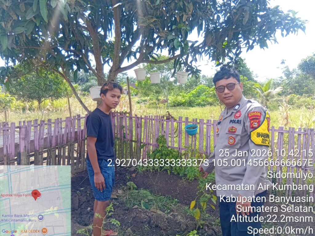 Banyuasin – Guna mendukung dan memperkuat program swasembada pangan nasional yang terus digencarkan pemerintah, Bhabinkamtibmas Polsek Air Kumbang melaksanakan kegiatan pembinaan kepada masyarakat di wilayah binaannya.