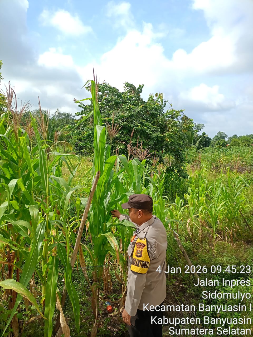 BANYUASIN – Dalam rangka mendukung program pemerintah di bidang ketahanan pangan, Bhabinkamtibmas Polsek Air Kumbang melaksanakan kegiatan pembinaan kepada masyarakat di Desa Sidomulyo, Kecamatan Air Kumbang, Kabupaten Banyuasin, Minggu (4/1/2026).