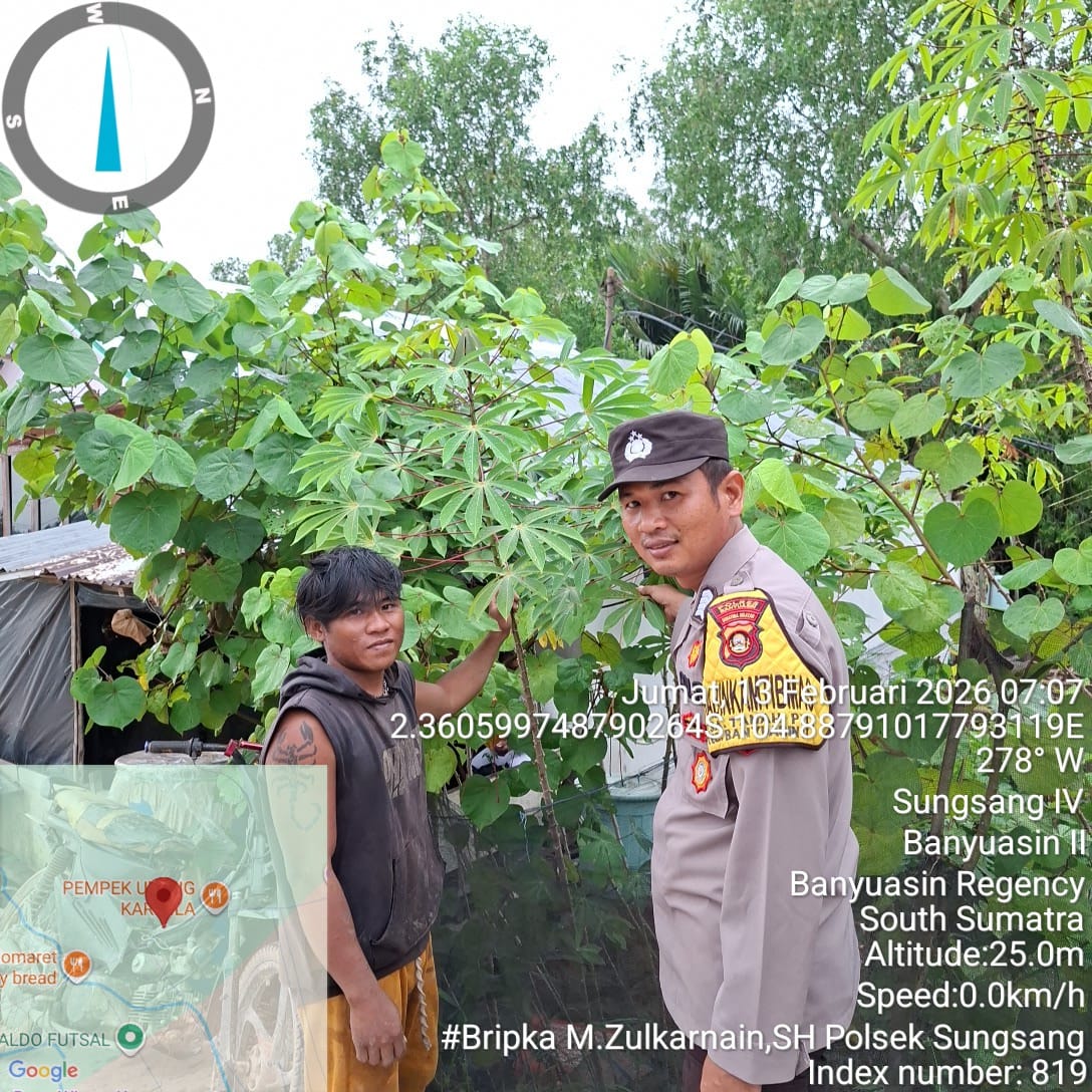 Kegiatan tersebut dilaksanakan oleh Bhabinkamtibmas Bripka M. Zulkarnain, SH pada Jumat, 13 Februari 2026, sekitar pukul 13.30 WIB hingga selesai, bertempat di Desa Sungsang I, Kecamatan Banyuasin II, Kabupaten Banyuasin.