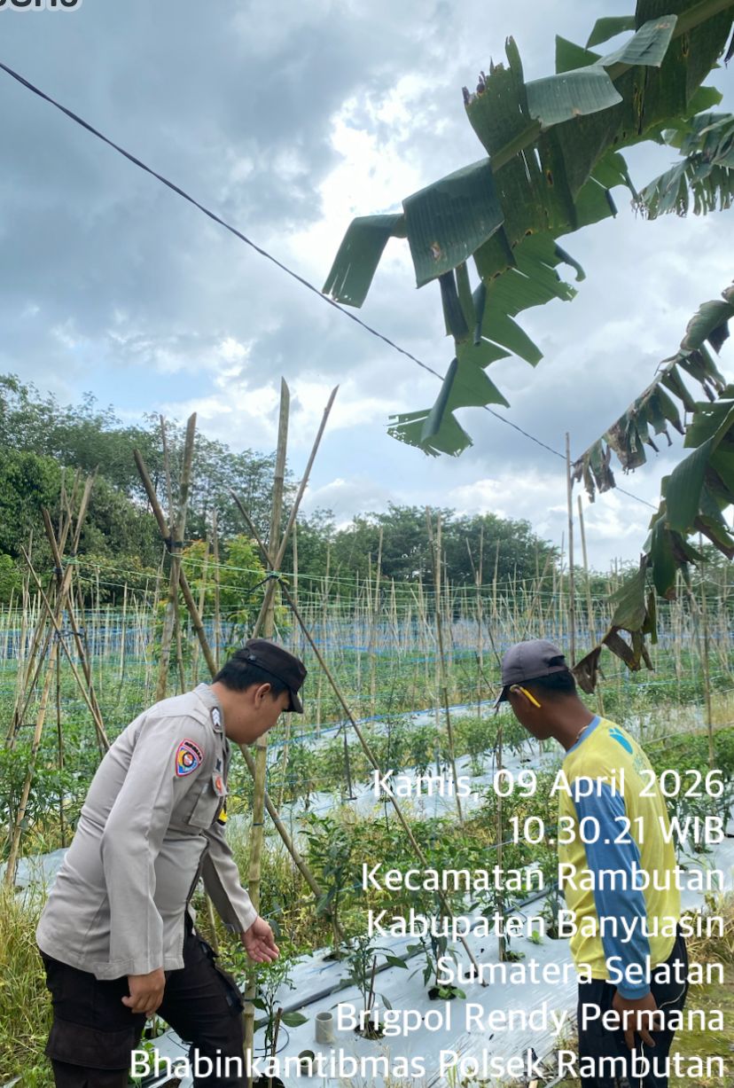 Banyuasin – Dalam upaya mendukung program strategis Presiden RI di bidang ketahanan pangan, jajaran Kepolisian Sektor (Polsek) Rambutan melalui personel Bhabinkamtibmas terus aktif melakukan pendekatan dan himbauan kepada masyarakat. Salah satu kegiatan terkini dilaksanakan pada Kamis (09/04/2026) di Desa Durian Gadis, Kecamatan Rambutan, Kabupaten Banyuasin.