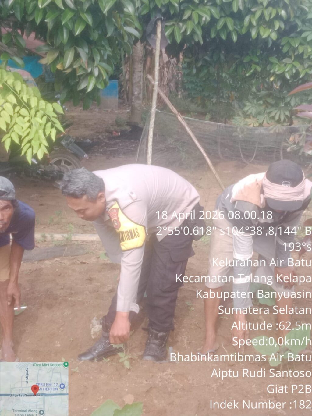 Banyuasin – Dalam upaya mendukung program strategis Pemerintah Pusat di bidang ketahanan pangan, AIPTU Rudi Santoso, Bhabinkamtibmas Polsek Talang Kelapa, menggelar kegiatan himbauan dan penggerakan masyarakat di Kelurahan Air Batu, Kecamatan Talang Kelapa, Kabupaten Banyuasin, pada Sabtu (18/4/2026) siang.