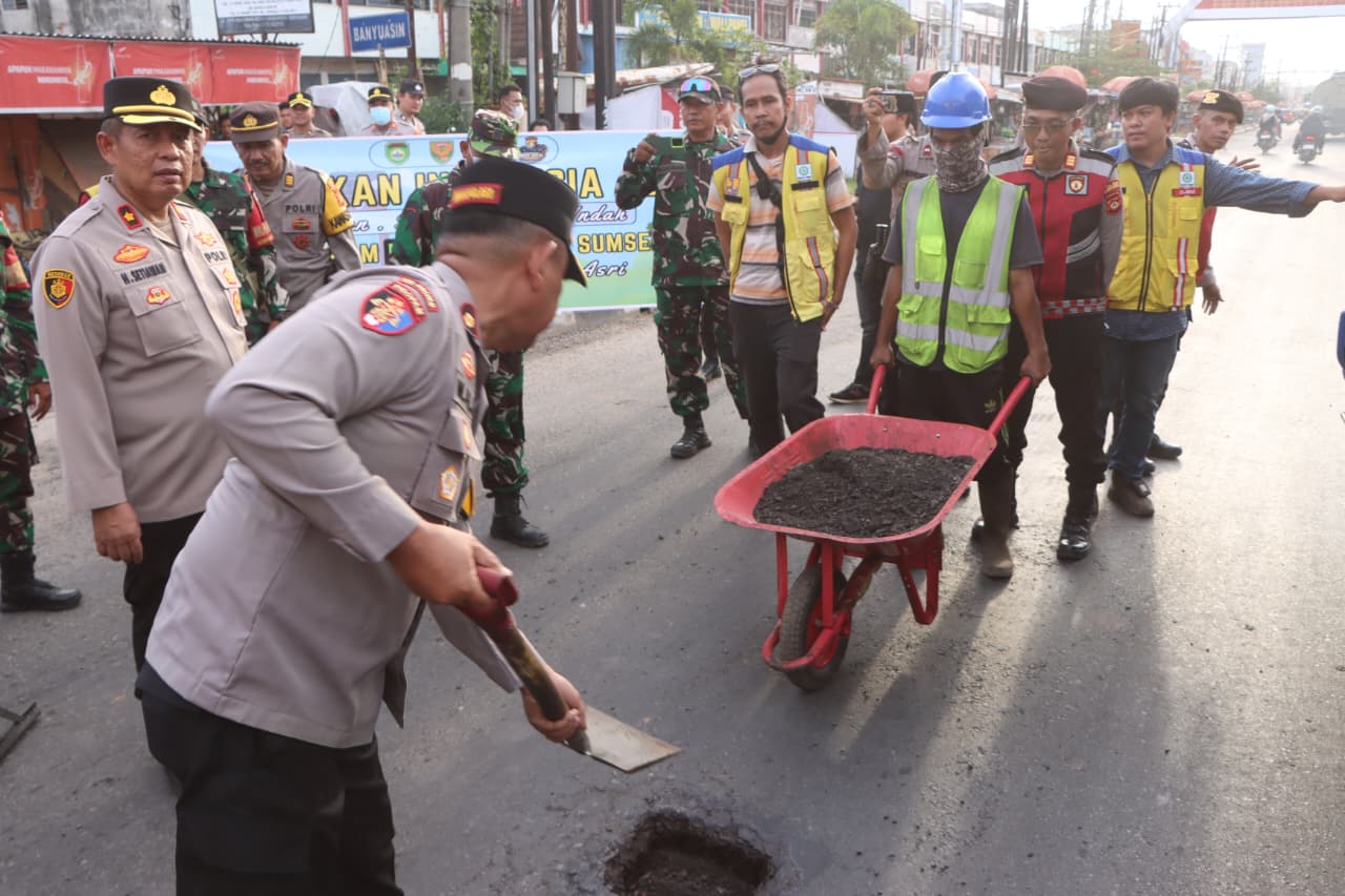 POLRES BANYUASIN, mitrasumsel — Petugas gabungan Brigdalkarhut yakni Manggala Agni, TNI dan Polri...